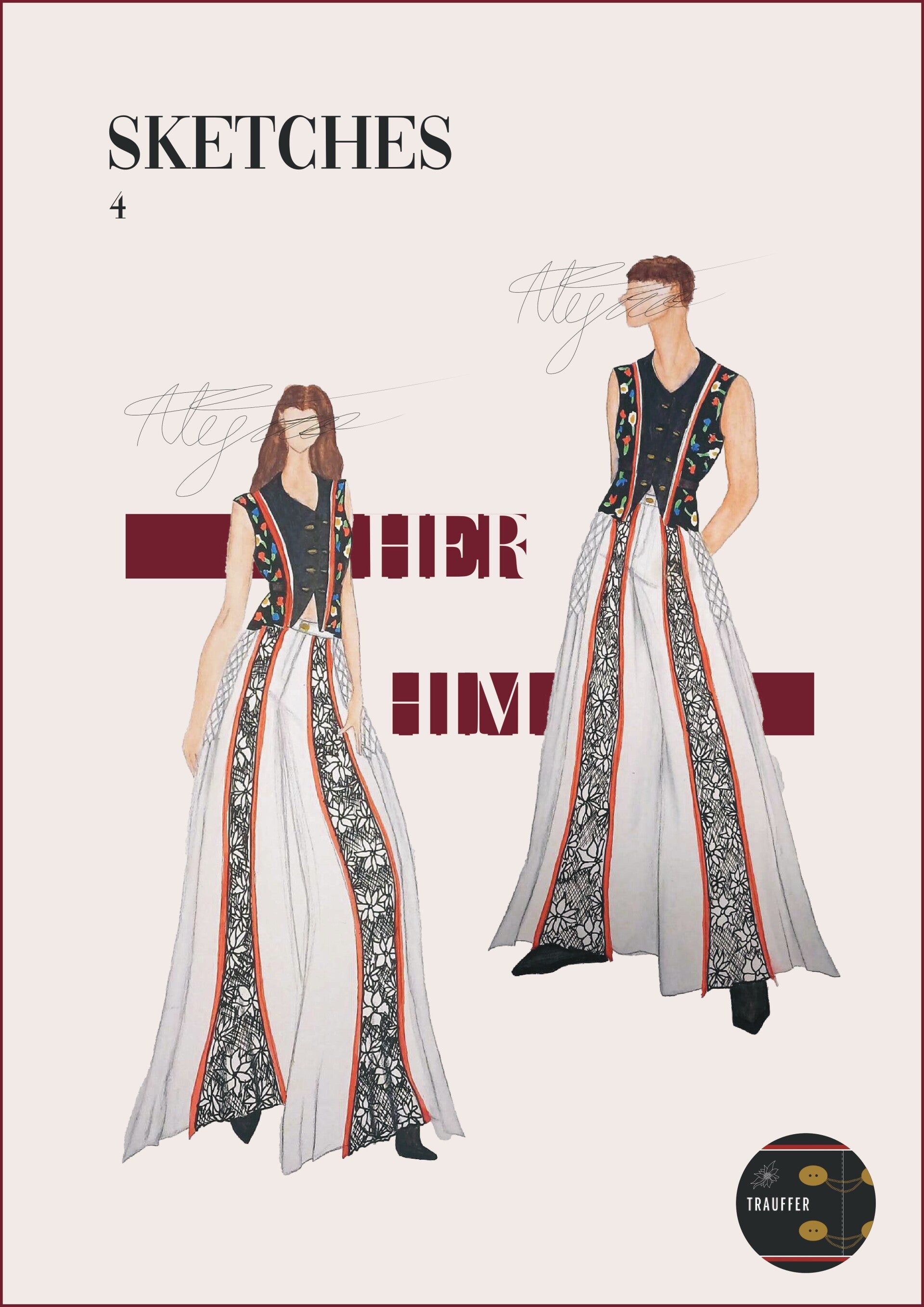 I wanted to merge elements that rarely meet: traditional Swiss costume culture and rock music and expand the concept even further by questioning "the norm" gender boundaries in the swiss culture. The theme of gender and identity is something deeply personal to me, and it plays a central role in my creative work. I wanted to explore what defines masculinity or femininity in fashion today and what happens when we simply let go of those categories.